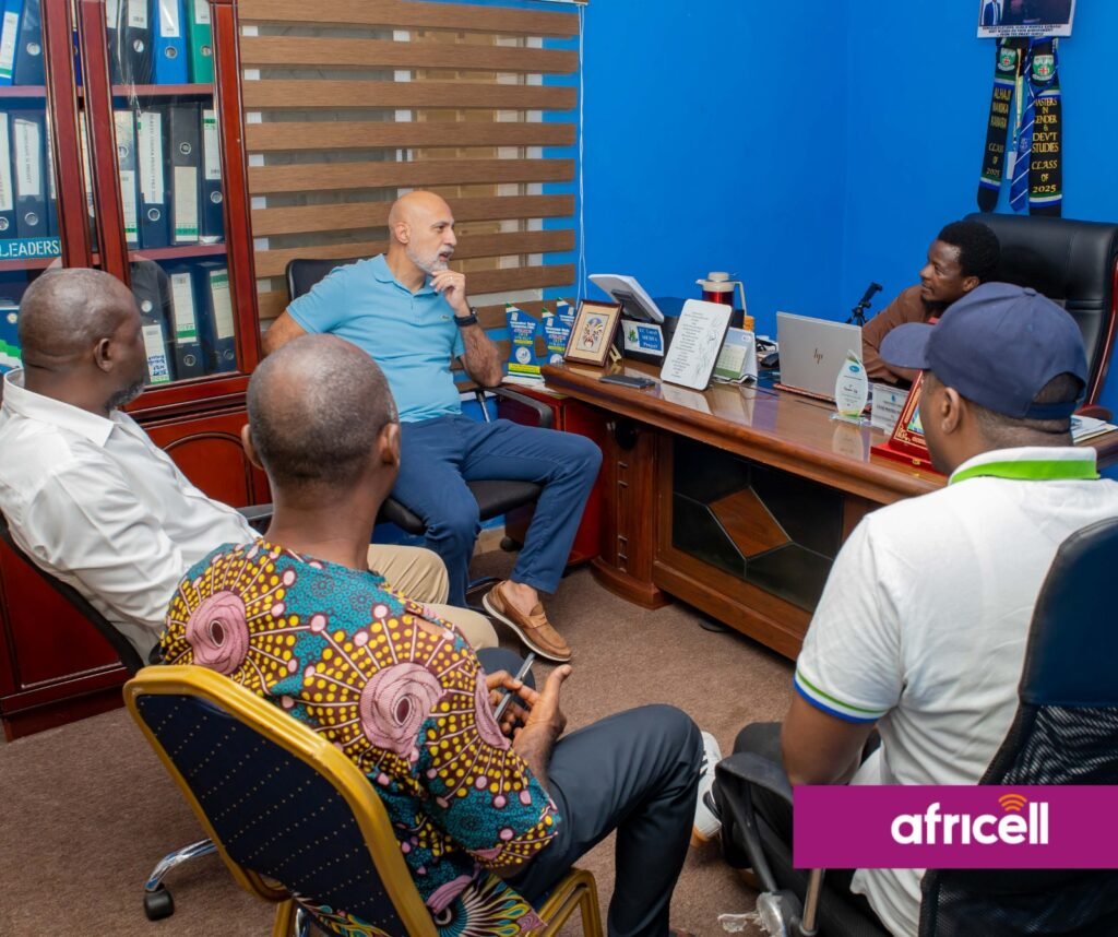 The Chief Executive Officer of Africell Sierra Leone on Friday paid a landmark courtesy visit to the Secretariat of the Sierra Leone Association of Journalists (SLAJ), becoming the first corporate CEO to officially engage the Association’s newly elected Executive at its headquarters.